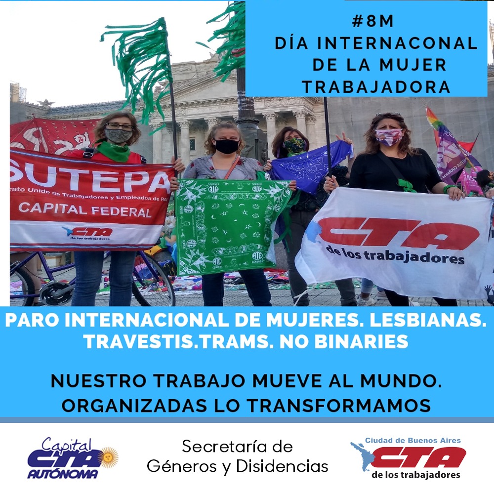 8M: Día Internacional de la Mujer Trabajadora 📢 Paro internacional de mujeres, lesbianas, travestis, trans, no binaries ✊🏽 Nuestro trabajo mueve al mundo, organizadas lo transformamos #DiaInternacionalDeLaMujerTrabajadora