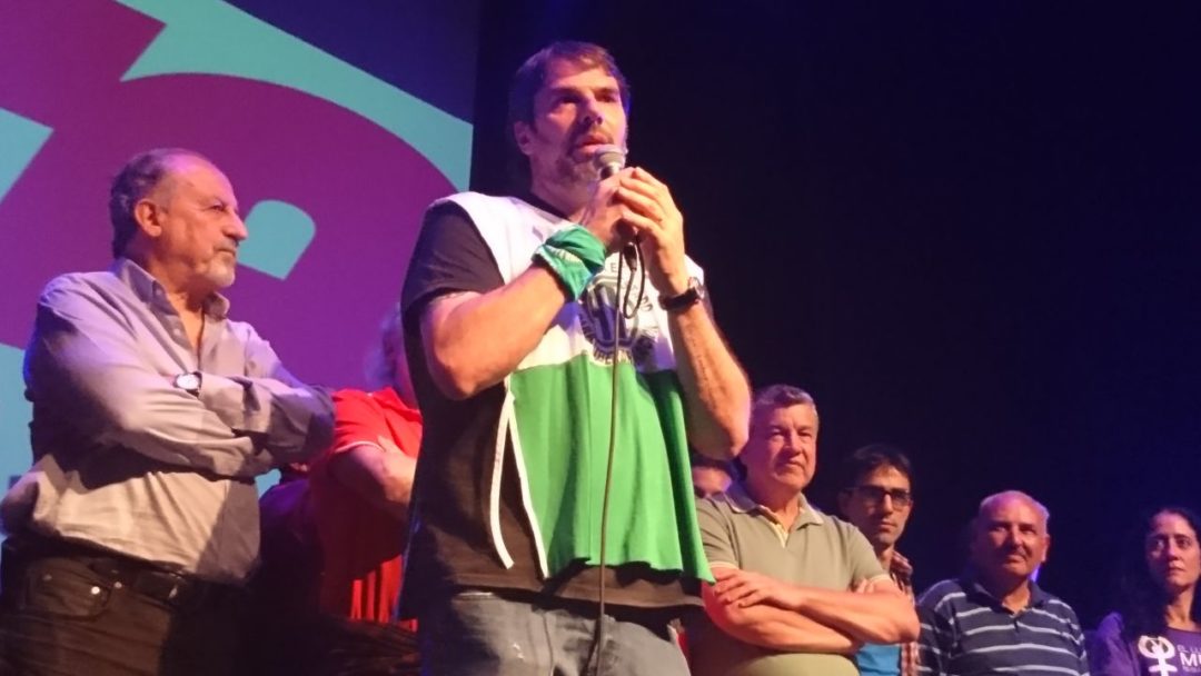 «Hoy decíamos reunidos a la mañana que tiene que servir el acto que hagamos para decirles a nuestros amigos y amigas, a los compañeros y compañeras de la CGT, de la CTA, de los movimientos sociales, de las pymes, a los luchadores del campo popular, tenemos que profundizar y expandir hasta el máximo la construcción de un frente nacional por la producción, por el trabajo, por los derechos de la clase trabajadora, por la vigencia de los derechos humanos. Tenemos que constituir las bases de una articulación política, social y sindical que le ofrezca a nuestro pueblo una alternativa para derrotar definitivamente a este gobierno de la clase dominante”.