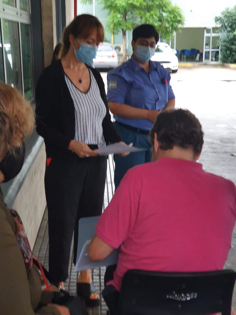 Durante la mañana, personas con discapacidad se encadenaron en señal de protesta y entregaron una nota exigiendo la vacunación, ya que, a pesar de la normativa del gobierno nacional que insta a vacunarlas por formar parte de los grupos de riesgo, desde la cartera de Quiros todavía no se abrió el registro para hacerlo.