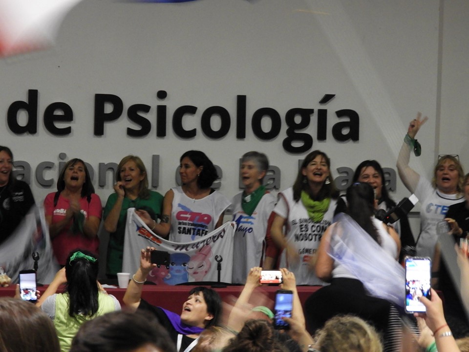 El sábado a la tarde, luego de participar en los talleres, colmamos el auditorio de la Facultad de Psicología para participar del plenario de las trabajadoras en unidad. Nos encontramos las compañeras de la CTA y la CFT, junto a invitadas de CTEP, para reafirmar la potencia del sindicalismo feminista y revalorizar el proceso de unidad sindical del que también somos protagonistas. Tomaron la palabra varias compañeras de distintos sectores de trabajo, entre ellas la Secretaria de Género de CTA, cra. Estela Diaz y la referente de la CFT, cra. Vanesa Siley.