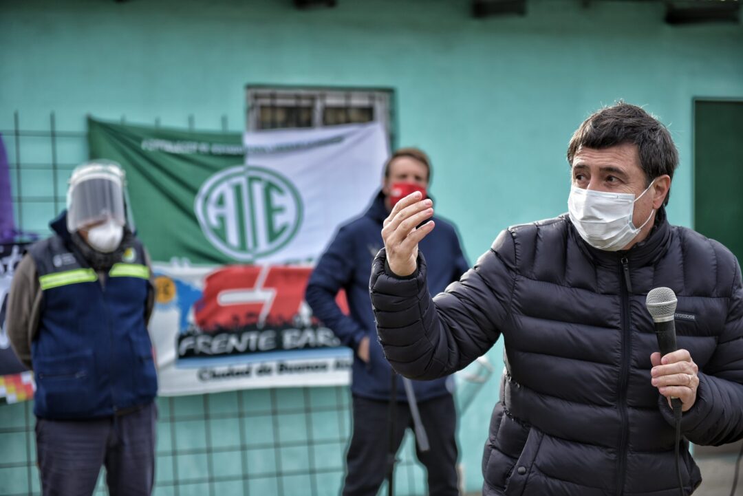 Con la presencia del Ministro de Desarrollo Social, Daniel Arroyo y el Secretario General de ATE Capital, Daniel Catalano, en el predio de la Cooperativa de Recuperadores Urbanos del Oeste que recicla desechos reutilizables, se hizo entrega de la ayuda alimentaria dispuesta por el Gobierno Nacional para comedores y merenderos de las CTA Autónoma y de lxs trabajadorxs de la Ciudad de Buenos Aires.