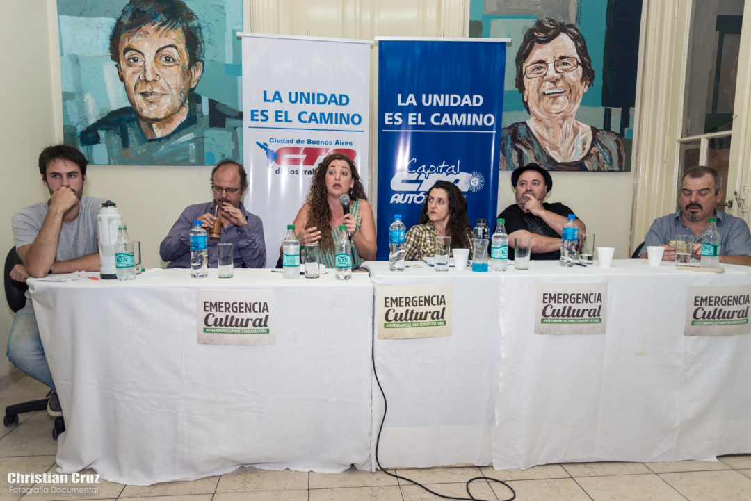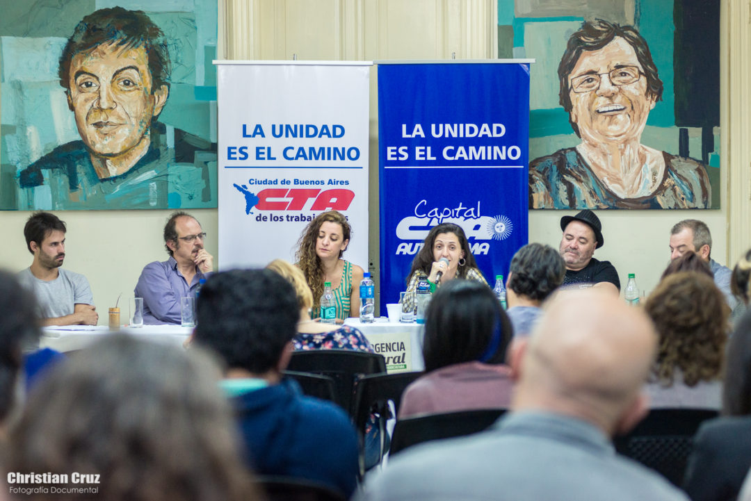 El panel «Modelos culturales en pugna» convocado por las Secretarías de Cultura y Formación de las dos CTA porteñas tuvo lugar en la Casa CTA (Av. Entre Ríos 488), con la presencia de Lola Berthet, Secretaria General de la Asociación Argentina de Actores, Alejandro Grimson, Dr. en Antropología e investigador del CONICET; Ricardo Rojas, Sec. de Cultura de la Asociación de Empleados de Farmacias – CGT y Andrea Mallimachi, Lic. en Ciencias de la Comunicación – CITRA, bajo la coordinacion del Tano Pisani (Sec. de Cultura CTA-T Ciudad) y Matías Gallastegui (Sec. de Cultura CTA-A Capital)