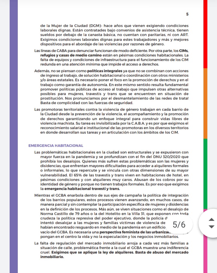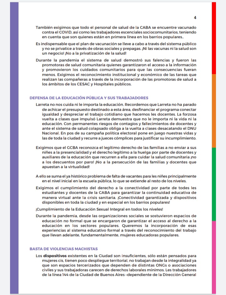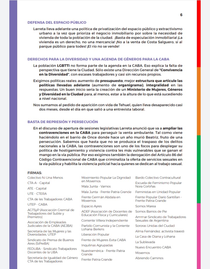 Documento de Ni una menos y organizaciónes de CABA