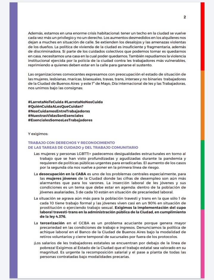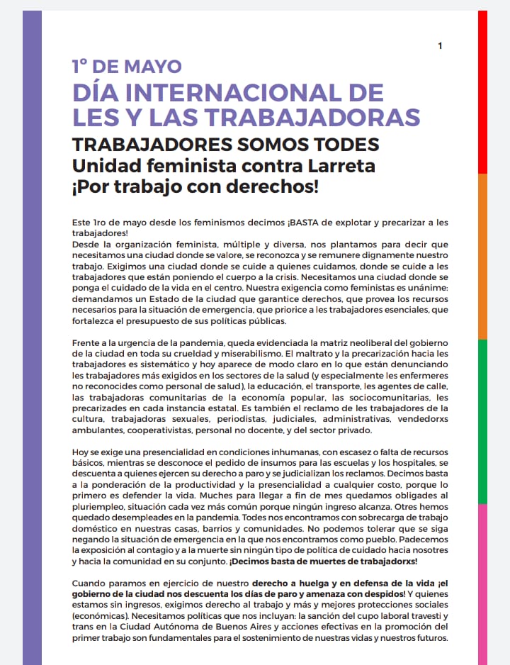 Las y les trabajadores feminista, múltiple y diversa, de CABA nos plantamos para decir que